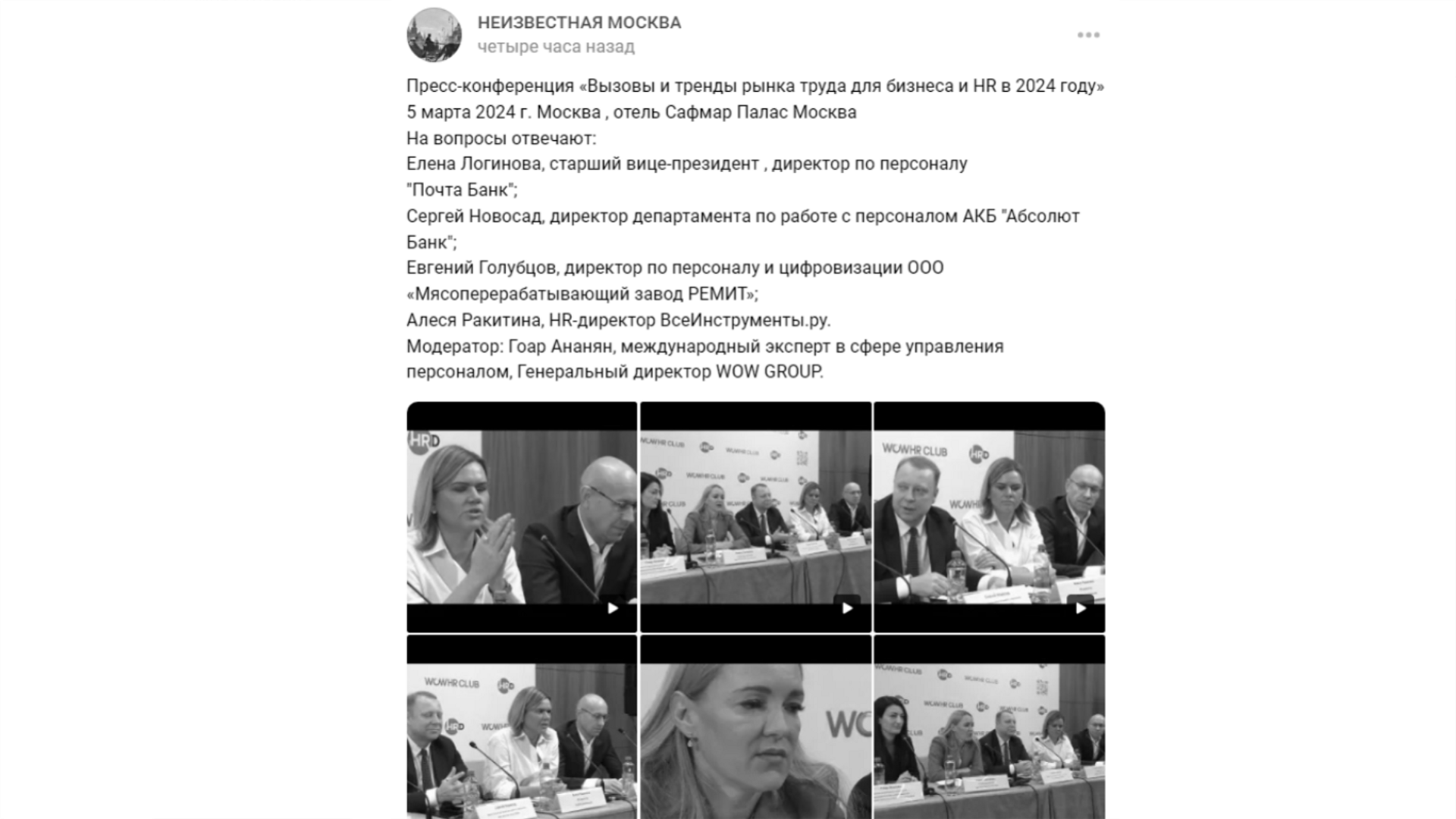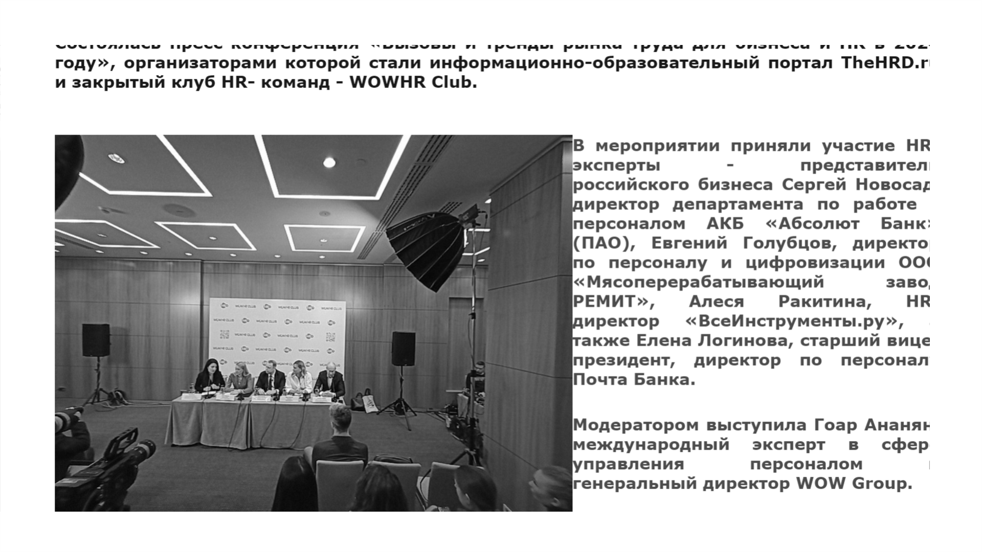 «В 2024 году WOWHR CLUB предоставил участникам сообщества доступ к уникальной российской и международной экспертизе. Мы сделали многое для усиления публичного позиционирования HR-лидеров и профессионального роста их команд.